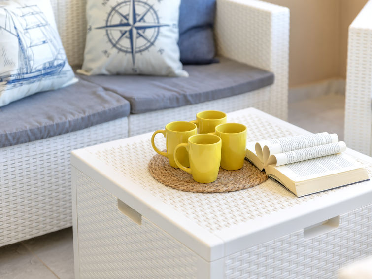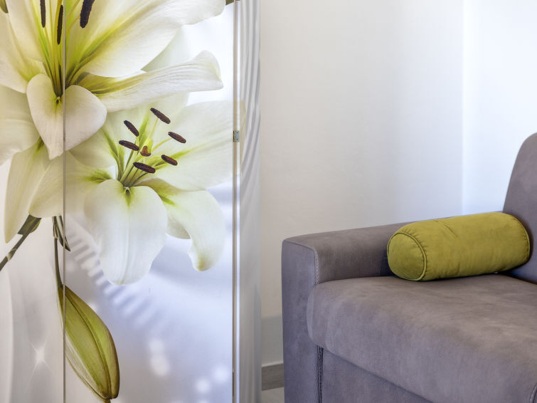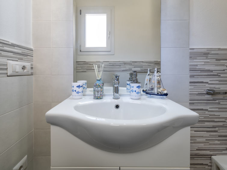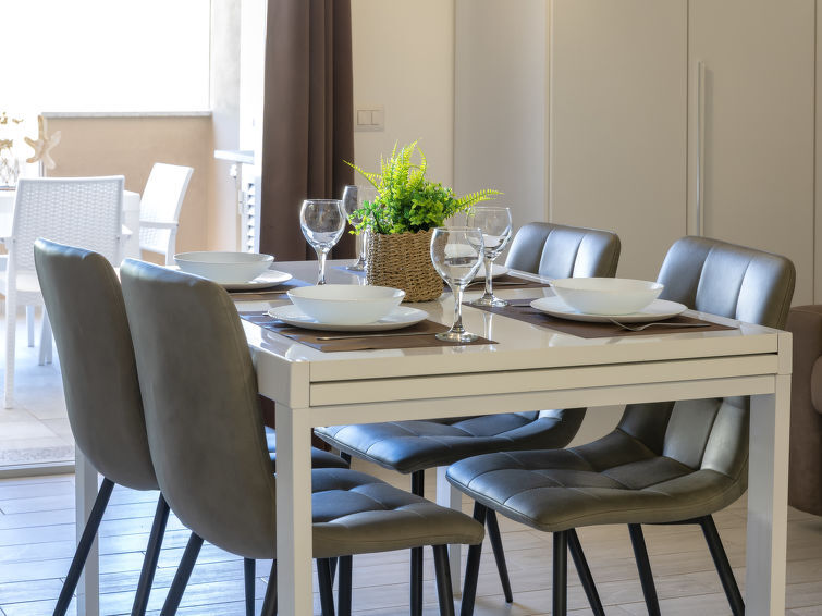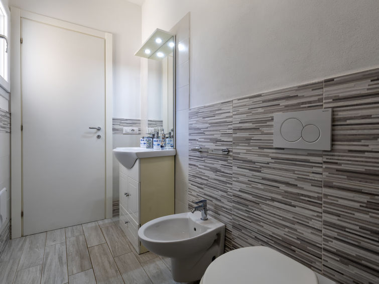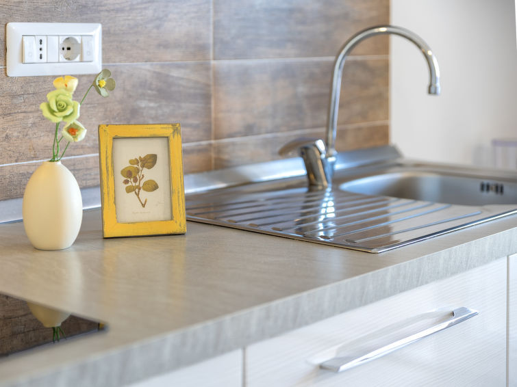 "Granello di sole", appartement 1-kamer 40 m2 op de 1e verdieping. Modern en gezellig ingericht: woon-/eetkamer met 1 divanbed, 1 2-pers divanbed en Sat-TV (Flatscreen TV). Uitgang naar het terras. Open keuken (oven, afwasmachine, 4 inductiekookplaten, broodrooster, waterkoker, elektrische koffiemachine). Douche/bidet/WC. Air-conditioning, heteluchtverwarming. Terras 12 m2, overdekt. Terrasmeubelen, zitgelegenheid. Ter beschikking: wasmachine, strijkijzer, haardroger. Internet (WiFi, gratis). IT000000C0000T0000