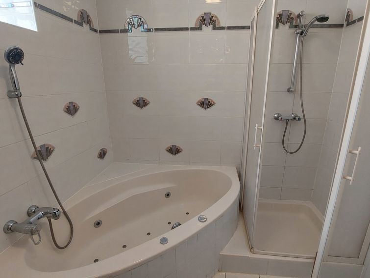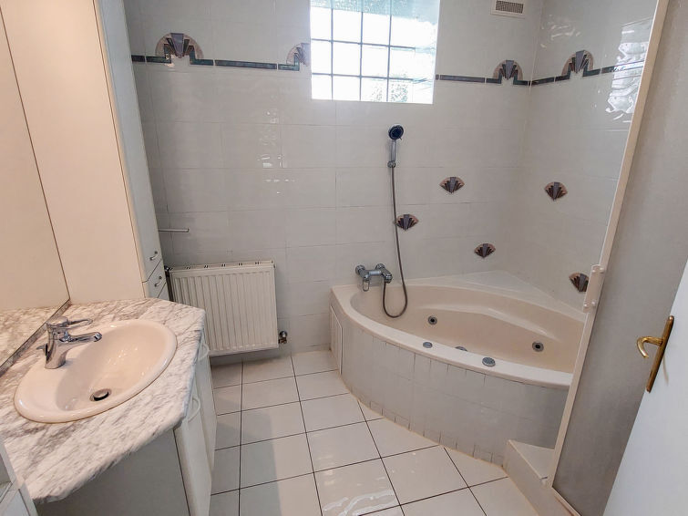 Halfvrijstaand huis 3-kamers 100 m2. Ruim en licht, gezellig ingericht: woonkamer met 1 2-pers divanbed, Sat-TV, Flatscreen TV en stereo-installatie. 1 2-pers. kamer met Sat-TV en Flatscreen TV. 1 2-pers. kamer. Keuken (oven, afwasmachine, 4 keramische glas kookplaten, magnetron, elektrische koffiemachine) met eettafel. Uitgang naar de tuin. Bad/douche, aparte WC, hydro massage bad. Zithoek in de tuin. Bergruimte. Ter beschikking: wasmachine. Internet (WiFi, gratis). Maximaal 1 huisdier/hond toegestaan.