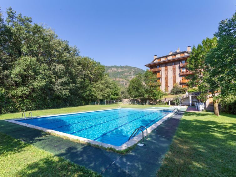Moderne, comfortabel flatgebouw. Villa wijk, 25 km van het skigebied. Voor medegebruik: tuin met gazon, openluchtzwembad hoekig (15 x 7 m, 120 - 250 cm diepte, seizoensgebonden beschikbaarheid: 01.Jun. - 30.Sep.). Kinderzwembad, buitendouche. In het huis: lift. Overdekte parkeerplaats, openbare parkeerplaatsen in de straat. Supermarkt 650 m, restaurant, bar 100 m, bushalte "Estació d'Autobusos de Sort" 650 m, treinstation "La Pobla de Segur" 28 km. Attracties in de buurt: Llavorsi 15 km, Esterri dAneu 32 km, Vielha 73 km, Andorra 70 km. Bekende skigebieden kunnen gemakkelijk worden bereikt: Port Aine 25 km, Espot 33 km. Bekende meren kunnen gemakkelijk worden bereikt: Llac de Sant Maurici 33 km. Wandelgebied Parc Nacional Aigüestortes 33 km. Auto noodzakelijk. De omgeving is gevoelig voor geluidsoverlast. Gelieve geen lawaai te maken en de rust te bewaren.