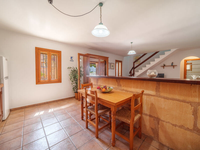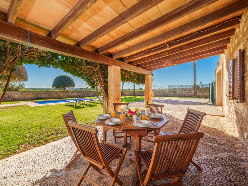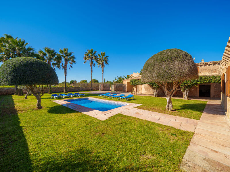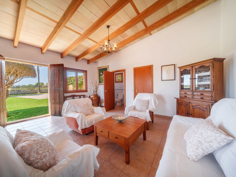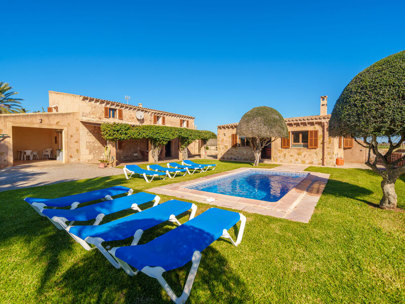 Campos 5 km van Es Trenc: Mooi, gezellige, eenvoudige woonboerderij "Es Palmer des Trenc", van 2 verdiepingen. Huurobject bestaande uit hoofd-/ bijgebouw, 6 km van zee, 6 km van het strand. Voor alleengebruik: tuin met gazon, openluchtzwembad hoekig (3 x 7 m, seizoensgebonden beschikbaarheid: 01.Mrt. - 31.Okt.). Patio, prieel, tuinmeubelen, barbecue, onderhoud zwembad door de eigenaar/tuinman. In het huis: wasmachine. Parkeerplaats bij het huis. Levensmiddelenwinkel 8 km, supermarkt 8 km, winkelcentrum 8 km, restaurant 6 km, bar 6 km, bakkerij 8 km, bushalte "Campos" 8 km, zandstrand "Ses Covetes" 6 km. Jachthaven 8 km, golfterrein (18 holes) 16 km. Attracties in de buurt: Ses Covetes 8 km, Campos 8 km, Santanyi 14 km, Ses Salines 6 km. Auto noodzakelijk. Geschikt voor families, baby uitrusting (incl.). Het objekt is geschikt voor 8 volwassenen. De eigenaar accepteert geen jeugdgroepen. Laden en lossen van de baggage is mogelijk bij het huis. Vliegveld 39 km van het huis.