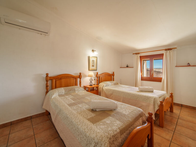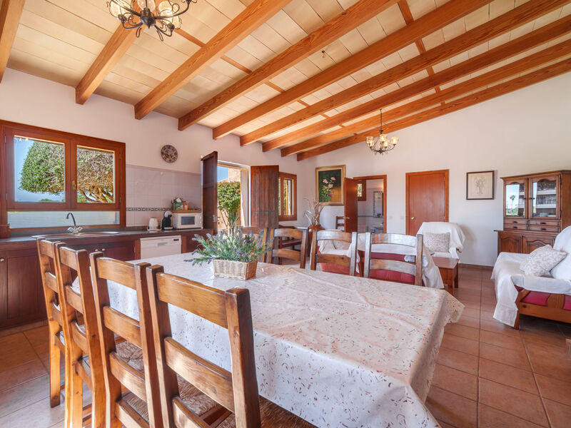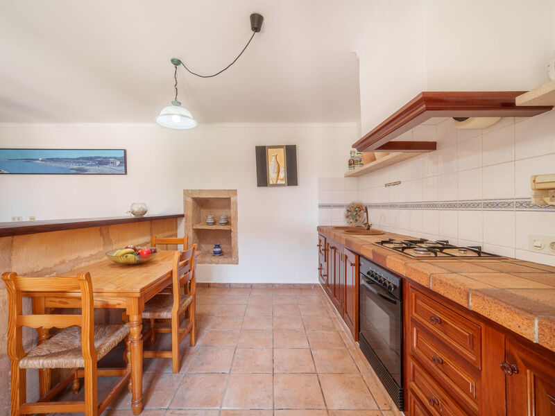 "Es Palmer des Trenc", woonboerderij 5-kamers. Het objekt is geschikt voor 8 volwassenen. Ruim en licht, eenvoudig en rustiek ingericht: 1 2-pers. kamer met 1 2-pers bed (1 x 150 cm, lengte 200 cm), air-conditioning en heteluchtverwarming. Woonkamer met kookhoek, bar en Sat-TV. Woonkeuken (4-pits kookplaat, oven, afwasmachine, broodrooster, waterkoker, magnetron, elektrische koffiemachine) met eettafel en Sat-TV. Badkamer, bad/WC. Air-conditioning, heteluchtverwarming. Verwarming niet in alle ruimtes. Bovenverdieping: 2 2-pers. kamers, elke kamer heeft 2 bedden (90 cm, lengte 200 cm), air-conditioning en heteluchtverwarming. 1 2-pers. kamer met 1 2-pers bed (1 x 180 cm, lengte 200 cm), air-conditioning en heteluchtverwarming. Bad/WC. Air-conditioning, heteluchtverwarming. Natuurstenen vloeren. Comfortabele inrichting in landelijke stijl. Zithoek in de tuin, gazon. Terrasmeubelen, barbecue, ligstoelen (8), zitgelegenheid. Panoramazicht op de bergen. Ter beschikking: wasmachine, strijkijzer, kinderstoel, kinderbed tot 2 jaar, haardroger. Internet (WiFi, gratis). Parkeerplaats bij het huis. Geschikt voor families. ETV/404 // Reg. Nr.: ESFCTU000007008000353907000000000000000000000ETV/4040