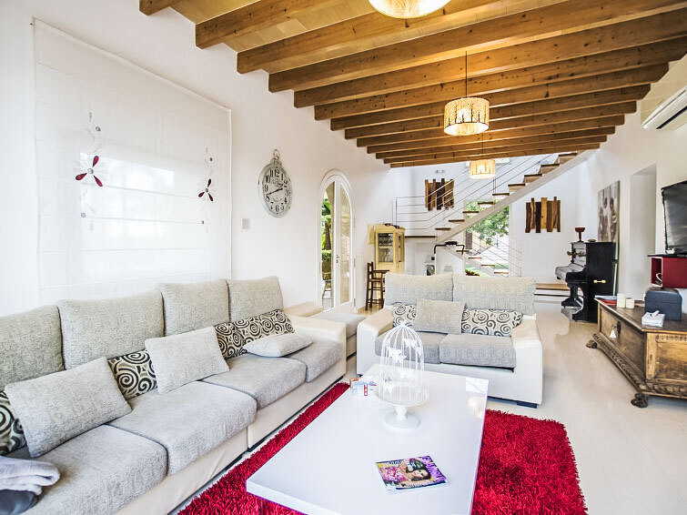 "Son Perot", villa 5-kamers 186 m2 op 2 verdiepingen. Het objekt is geschikt voor 9 volwassenen. Ruim en licht, zeer mooi en stijlvol ingericht: groot, open woonkamer met schuifdeur, panoramavenster met Sat-TV, Flatscreen TV, air-conditioning en heteluchtverwarming. Uitgang naar de zitplaats in de tuin, naar het zwembad. 1 groot 2-pers. kamer met panoramavenster met 1 2-pers bed (150 cm), bad/douche/WC, air-conditioning en heteluchtverwarming. Uitgang naar de zitplaats in de tuin. Open keuken (oven, afwasmachine, 3 keramische glas kookplaten, magnetron, diepvriezer, elektrische koffiemachine) met eettafel, air-conditioning en heteluchtverwarming. Bad/WC. Bovenverdieping: 2 groot 2-pers. kamers met panoramavenster, elke kamer heeft 1 2-pers bed, bad/douche/WC, air-conditioning en heteluchtverwarming. 1 groot 2-pers. kamer met panoramavenster met 3 bedden (90 cm), bad/douche/WC, air-conditioning en heteluchtverwarming. Groot tuin, gazon, prieel. Terrasmeubelen, barbecue, ligstoelen. Uitzicht op de tuin en het landschap. Ter beschikking: wasmachine, strijkijzer, haardroger. Internet (WiFi, gratis). Parkeerplaats (omheind). Geschikt voor families. ETV/5876