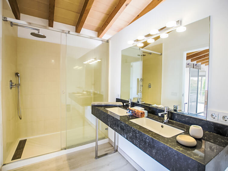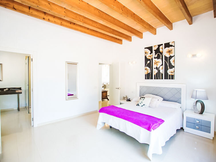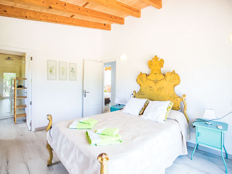 2 km van María de la Salut: Vanaf januari 2020 zal deze villa beschikken over een fietswerkplaats, volledig uitgerust met gereedschap en andere gebruiksvoorwerpen. Zeer groot, moderne, mooi villa "Son Perot", van 2 verdiepingen, omgeven door velden. 2 huizen in de plaats. Buiten de plaats, 3 km van het centrum van María de la Salut, rustige, zonnige ligging, 3 km van de bosrand, 15 km van zee, te midden van groen. Voor alleengebruik: terrein (omheind), groot, verzorgde tuin met gazon en bomen, 2 zwembaden, overdekt zwembad hoekig (8 x 4 m, seizoensgebonden beschikbaarheid: 01.Jan. - 31.Dec.). Douche/WC bij het zwembad, tafeltennis, patio, prieel, prieel, tuinmeubelen, barbecue. In het huis: internetaansluiting, Internet (WiFi), tafeltennis, air-conditioning, wasserette, wasmachine. Parkeerplaats bij het huis op het terrein. Supermarkt 2.5 km, restaurant 2.5 km, bar 2.2 km, bakkerij 2.5 km, bushalte "Maria de la Salut 2 (35003)" 4 km, zandstrand "Can Picafort" 15 km, rotsstrand "Can Picafort" 17 km. Jachthaven 17 km, golfterrein (18 holes) 25 km. Auto noodzakelijk. Geschikt voor families, geschikt voor senioren. Het objekt is geschikt voor 9 volwassenen groepen jongeren uitsluitend op aanvraag. Laden en lossen van de baggage is mogelijk bij het huis. De eigenaar woont op hetzelfde terrein. Dieren in de buurt. Vliegveld 35 km van het huis.