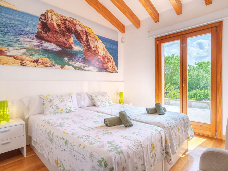 Zeer groot, comfortabele villa "La Forca", van 2 verdiepingen. Buiten de plaats, 1 km van het centrum van Santa Margalida, rustige, zonnige ligging, 11 km van zee, te midden van groen. Voor alleengebruik: wild terrein 14.000 m2 (omheind), groot tuin met gazon en bomen, openluchtzwembad (12 x 6 m, 100 - 180 cm diepte, seizoensgebonden beschikbaarheid: 01.Jan. - 31.Dec.). Kinderzwembad, buitendouche, tafeltennis, patio, prieel, prieel, tuinmeubelen, barbecue, grill, onderhoud zwembad door de eigenaar/tuinman. In het huis: internetaansluiting, Internet (WiFi), bergruimte voor fietsen, air-conditioning. Parkeerplaats bij het huis op het terrein. Supermarkt 1.4 km, restaurant 1.2 km, bar 1.2 km, bakkerij 1.5 km, centrum te voet bereikbaar in 20 minuten, bushalte "Plaça de la Vila, Santa Margalid" 1.2 km, treinstation "Muro" 8 km, veerboot "Port d'Alcúdia" 18.2 km, zandstrand "Can Picafort" 11 km. Jachthaven 11 km, golfterrein (18 holes) 22 km, fietspad 500 m. Attracties in de buurt: Can Picafort-Son Serra-Santa Margarita, Palma de Mallorca 53 km, Hidropark Aquatic Park 20 km, Mallorca Fashion Outlet % Cinemas 45 km. Wandelgebied Finca Pública Son Real, Parc Natural de Farrutx, S'Albufera de Mallorca. Auto noodzakelijk. Het objekt is geschikt voor 10 volwassenen groepen jongeren uitsluitend op aanvraag. Dieren in de buurt. Vliegveld 57 km van het huis.