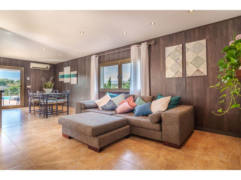 "Son Alcaines Sineu", huis 3-kamers 150 m2 op 2 verdiepingen, op het noordwesten gelegen. Het objekt is geschikt voor 4 volwassenen. Licht, comfortabel en mooi ingericht: woon-/eetkamer met Digitale TV, internationale TV-zenders en air-conditioning. Uitgang naar het terras, naar het zwembad. Woonkeuken (oven, afwasmachine, 1 keramische glas kookplaat, 4 kookpitten (vlammen), broodrooster, waterkoker, magnetron, elektrische koffiemachine) met eettafel, Digitale TV, internationale TV-zenders en air-conditioning. Uitgang naar het terras, naar het zwembad. Douche/WC. Elektrische verwarming. Bovenverdieping: 1 groot 2-pers. kamer met panoramavenster met 1 2-pers bed (1 x 150 cm, lengte 190 cm), douche/WC, Digitale TV, internationale TV-zenders en air-conditioning. 1 2-pers. kamer met panoramavenster met 2 bedden (90 cm, lengte 190 cm), douche/WC, Digitale TV, internationale TV-zenders en air-conditioning. Terrasmeubelen, barbecue (verrijdbaar), ligstoelen (4), loggia. Panoramazicht op het zwembad. Ter beschikking: wasmachine, strijkijzer, kinderstoel, kinderbed tot 2 jaar, haardroger. Internet (WiFi, gratis). Geschikt voor families. Het zwembad genoemd in de beschrijving is voor privé gebruik. ETV5345 // Reg. Nr.: ESFCTU000007011000585377000000000000000000000ETV53450