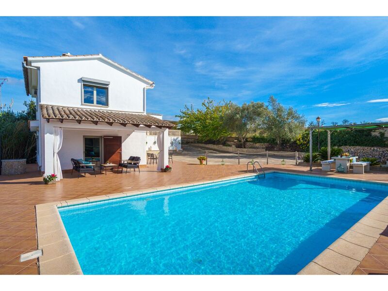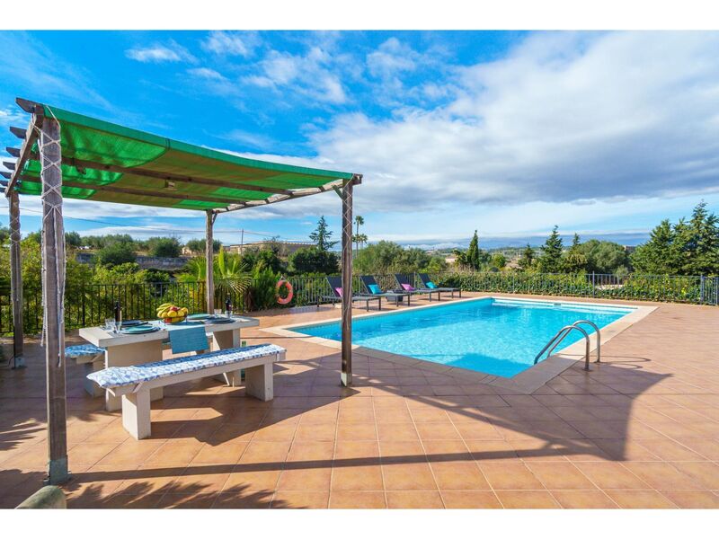 Son Alcaines 6 km van Sineu: Mooi, comfortabele eengezinswoning "Son Alcaines Sineu", omgeven door velden. Buiten de plaats, 6 km van het centrum van Sineu, rustige, zonnige ligging, 2 km van de bosrand, 18 km van zee, 18 km van het strand, te midden van groen, op het noordwesten. Voor alleengebruik: boomgaard (omheind), openluchtzwembad hoekig (5 x 10 m, 100 - 200 cm diepte, seizoensgebonden beschikbaarheid: 01.Mrt. - 31.Okt.) met alarminstallatie. Buitendouche, terras (100 m2), barbecue, onderhoud zwembad door de eigenaar/tuinman. Parkeerplaats op het terrein. Winkel 6 km, levensmiddelenwinkel 6 km, supermarkt 6 km, restaurant 1 km, bar 1 km, bakkerij 6 km, café 6 km, fietsverhuur 18 km, tramhalte "Sineu" 6 km, bushalte "Sineu" 6 km, treinstation "Sineu" 6 km, veerboot "Puerto de Alcudia" 30 km, zandstrand "Playa de Muro" 22 km. Jachthaven 18 km, jachthaven 30 km, golfterrein (18 holes) 40 km, surfschool 22 km, zeilschool 22 km, tennis 18 km, manege 20 km, sportcentrum 18 km, wandelroutes 10 km vanaf het huis, fietspad 5 km. Attracties in de buurt: Rafa Nadal Tennis Academy 10 km, Cuevas del Drach 18 km, Talaiots de Son Fornés 14 km, Museu Etnològic dels Calderers 11 km. Auto noodzakelijk. Geschikt voor families. Het objekt is geschikt voor 4 volwassenen. De eigenaar accepteert geen groepen. De eigenaar accepteert geen jeugdgroepen. Autobaan 14 km van het huis. Spoorweg 6 km van het huis. Vliegveld 35 km van het huis. De omgeving is gevoelig voor geluidsoverlast. Gelieve geen lawaai te maken en de rust te bewaren.