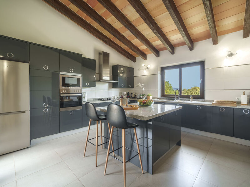 Artà 3 km van Artá: Groot, moderne, mooi landgoed "Bellpuig", gerenoveerd, omgeven door bomen en velden. Buiten de plaats, 3.5 km van het centrum van Artà, rustige, zonnige ligging, 11 km van zee, 11 km van het strand, te midden van groen. Voor alleengebruik: wild terrein (omheind), mooie, verzorgde tuin met planten, openluchtzwembad hoekig (10 x 4 m, 140 - 160 cm diepte, seizoensgebonden beschikbaarheid: 01.Jan. - 31.Dec.). Buitendouche, patio, prieel, prieel, tuinmeubelen, barbecue, onderhoud zwembad door de eigenaar/tuinman. In het huis: internetaansluiting, Internet (WiFi), bergruimte voor fietsen, wasmachine. Parkeerplaats bij het huis op het terrein. Winkel 3.5 km, supermarkt 3.8 km, restaurant 3.4 km, bar 3.4 km, bakkerij 3.6 km, fietsverhuur 3.8 km, centrum te voet bereikbaar in 48 minuten, bushalte "Artà" 3 km, treinstation "Manacor" 22 km, zandstrand "Cala Bona,Sa Marjal,Cala Millo" 12 km. Jachthaven 12.5 km, golfterrein (18 holes) 8.3 km, tennis 3.5 km, wandelroutes 2 km vanaf het huis, fietspad 150 m. Attracties in de buurt: Artá, Son Servera, Capdepera, St Lorenzo, Artá Local Market (Tuesday 9-14h) 4.7 km, Colonya de Sant Pere, Betlem. Wandelgebied Ermita de Betlem, Parc Natural de Llevant. Auto noodzakelijk. Geschikt voor families, geschikt voor senioren. Het objekt is geschikt voor 8 volwassenen. De eigenaar accepteert geen jeugdgroepen. Dieren in de buurt. Vliegveld 65 km van het huis.