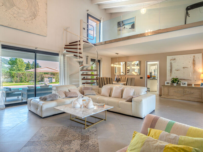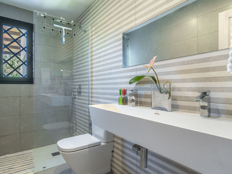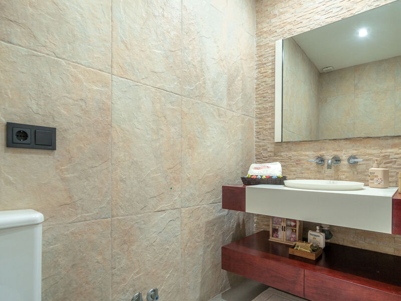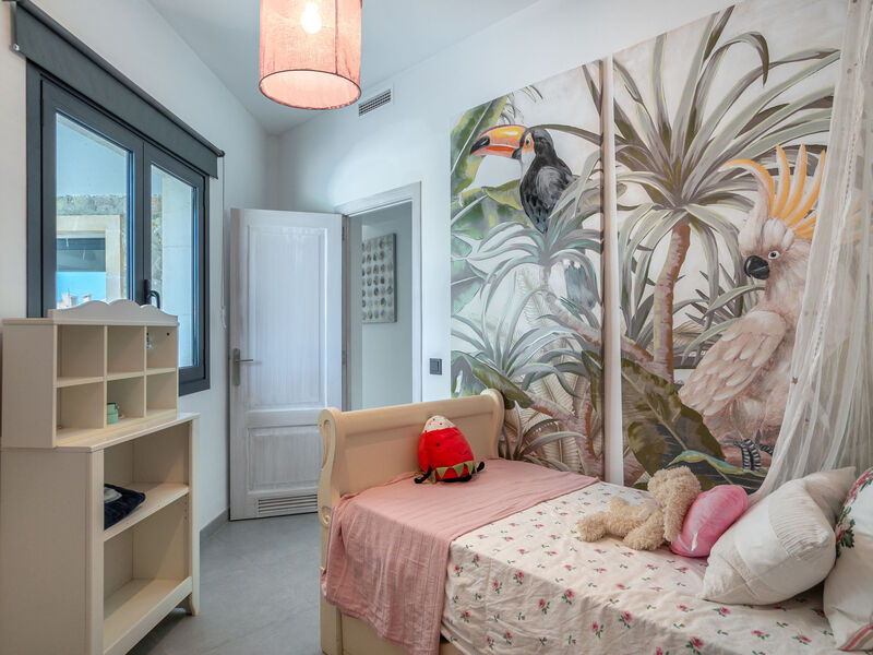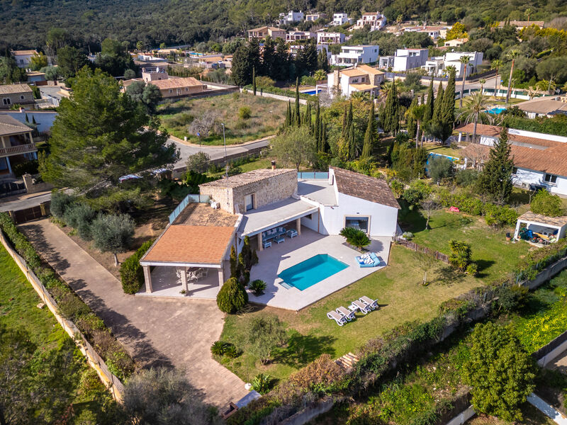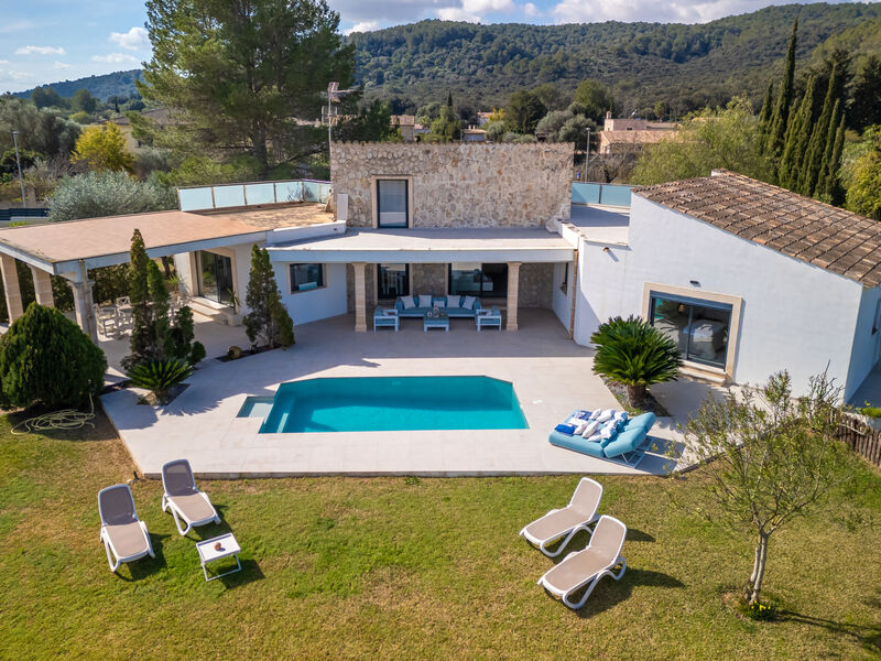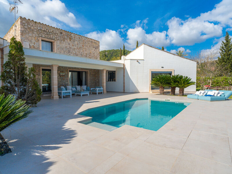 "Ca na Saurina", villa 5-kamers 200 m2 op 2 verdiepingen. Het objekt is geschikt voor 7 volwassenen. Ruim en licht, volledig gerenoveerd, zeer comfortabel en modern ingericht: groot, open woon-/eetkamer met open haard (alleen decoratie), eettafel, Digitale TV, internationale TV-zenders, Flatscreen TV, air-conditioning en heteluchtverwarming. Uitgang naar de zitplaats in de tuin, naar het zwembad. 1 groot 2-pers. kamer met 1 2-pers bed (160 cm, lengte 200 cm), bad/douche/WC, dubbele wastafels, air-conditioning en heteluchtverwarming. Uitgang naar de zitplaats in de tuin. 1 2-pers. kamer met 1 2-pers bed (150 cm, lengte 190 cm), air-conditioning en heteluchtverwarming. Uitgang naar de zitplaats in de tuin. 1 2-pers. kamer met 1 x 2 stapelbedden (90 cm, lengte 190 cm), douche/WC, dubbele wastafels, air-conditioning en heteluchtverwarming. 1 kamer met 1 bed (90 cm, lengte 190 cm), air-conditioning en heteluchtverwarming. Keuken (5-pits kookplaat, oven, afwasmachine, broodrooster, waterkoker, magnetron, diepvriezer, elektrische koffiemachine, kookeiland) met air-conditioning en heteluchtverwarming. Uitgang naar de zitplaats in de tuin. Aparte WC. Bovenverdieping: (wenteltrap) galerij met afgeschuinde daken. Ruime zithoek in de tuin, prieel. Terrasmeubelen, barbecue, ligstoelen (6), loggia. Beperkt uitzicht op de bergen. Ter beschikking: wasmachine, droger, strijkijzer, kinderstoel, kinderbed tot 2 jaar, haardroger. Internet (WiFi, gratis). Parkeerplaats bij het huis. Rookvrij huis. Brandblusser. Het zwembad genoemd in de beschrijving is voor privé gebruik. ETV/10554 // Reg. Nr.: ESFCTU0000070300002093420000000000000000000ETV/105547