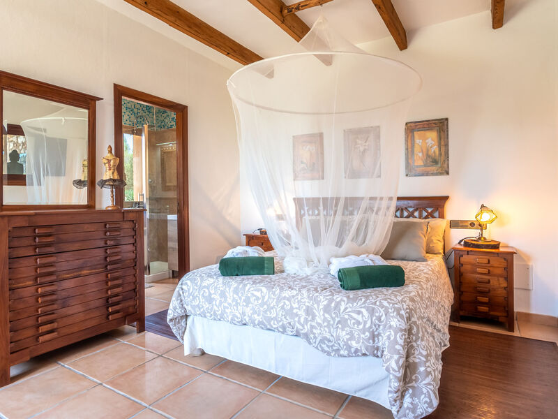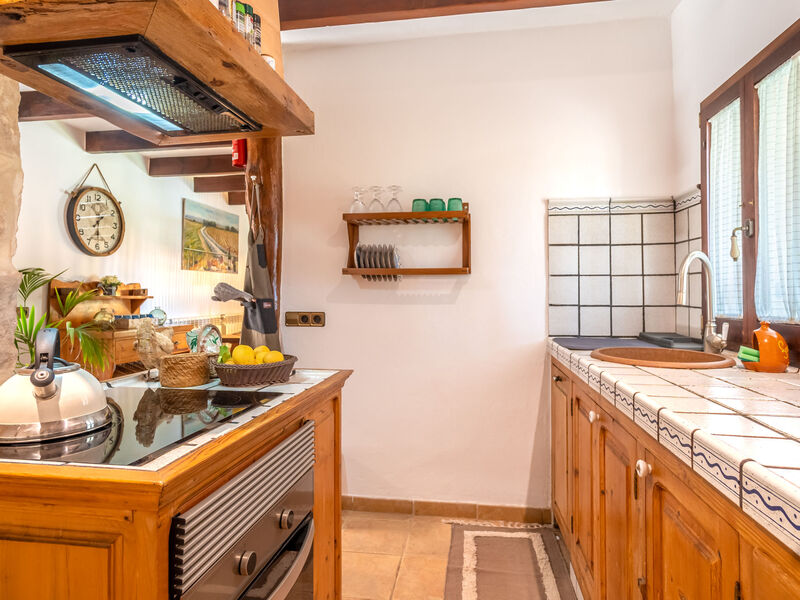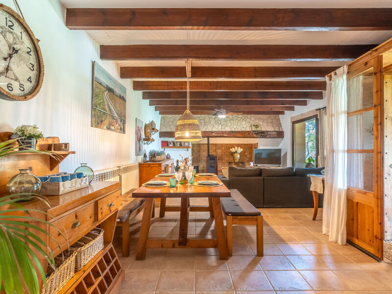"Sa Caseta", villa 4-kamers 200 m2 op 2 verdiepingen. Het objekt is geschikt voor 6 volwassenen. Volledig gerenoveerd, rustiek en met veel hout ingericht: groot woon-/eetkamer met open haard, eettafel, Digitale TV en Flatscreen TV. 1 2-pers. kamer met panoramavenster met 1 2-pers bed (150 cm, lengte 200 cm), douche/WC, Digitale TV, Flatscreen TV en ventilator. 1 groot 2-pers. kamer met 1 2-pers bed (150 cm, lengte 200 cm), ventilator. Keuken (oven, afwasmachine, 3 keramische glas kookplaten, broodrooster, waterkoker, magnetron, diepvriezer, elektrische koffiemachine, kookeiland). Douche/WC. Bovenverdieping: (buitentrap), 1 groot 2-pers. kamer met panoramavenster met 1 2-pers bed (150 cm, lengte 200 cm), douche/WC en ventilator. Groot tuin, gazon. Terrasmeubelen, barbecue, ligstoelen, loggia. Zeer mooi panoramazicht op het landschap. Ter beschikking: wasmachine, droger, strijkijzer, kinderstoel, kinderbed tot 2 jaar, haardroger. Internet (WiFi, gratis). Eén tweepersoonskamer is buiten het appartement. Geen interne verbinding tussen de etages. Het zwembad genoemd in de beschrijving is voor privé gebruik. ETV/11676