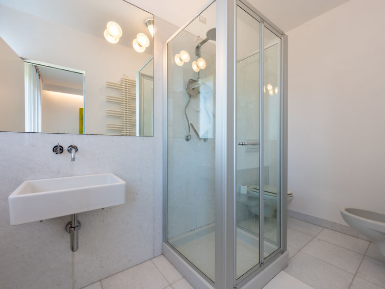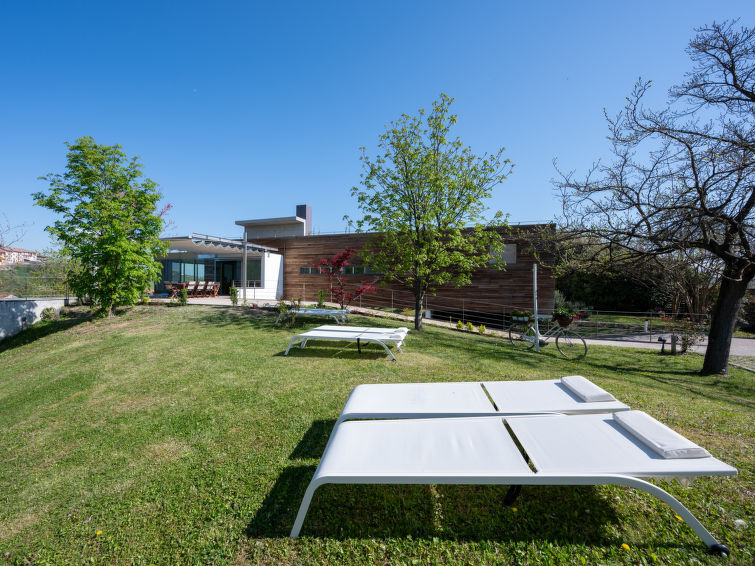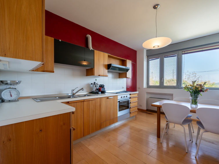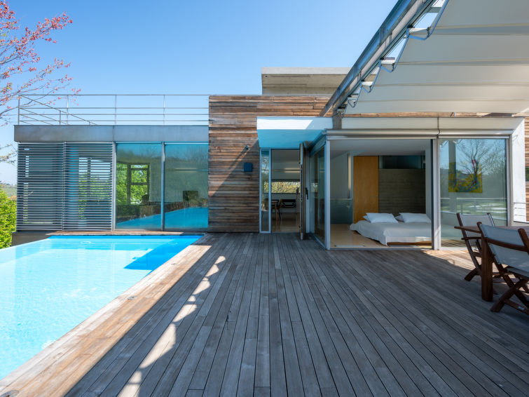 Villa 5-kamers 180 m2 op 2 verdiepingen. Modern en smaakvol ingericht: woon-/eetkamer met schuifdeur, panoramavenster met 1 2-pers divanbed, eettafel en TV. Uitgang naar het terras, naar het zwembad. 1 2-pers. kamer met douche/bidet/WC. 1 2-pers. kamer met bad/douche/bidet/WC. Woonkeuken (oven, afwasmachine, 4 inductiekookplaten, elektrische koffiemachine). Aparte WC. Souterrain: woon-/slaapkamer met 1 2-pers divanbed, eettafel en TV. Uitgang naar de tuin. 1 2-pers. kamer met douche/bidet/WC. Kookhoek (oven, 4 inductiekookplaten). Verwarming met zonne-energie, air-conditioning. Verwarming alleen beschikbaar van 15.10. tot 15.04. 2 groot terrassen. Terrasmeubelen, ligstoelen. Zeer mooi panoramazicht op het landschap. Ter beschikking: wasmachine, kinderbed tot 2 jaar, haardroger. Internet (WiFi, gratis). Maximaal 1 huisdier/hond toegestaan. Rookmelders, brandblusser. IT004051C2J239CUSW