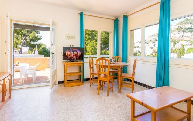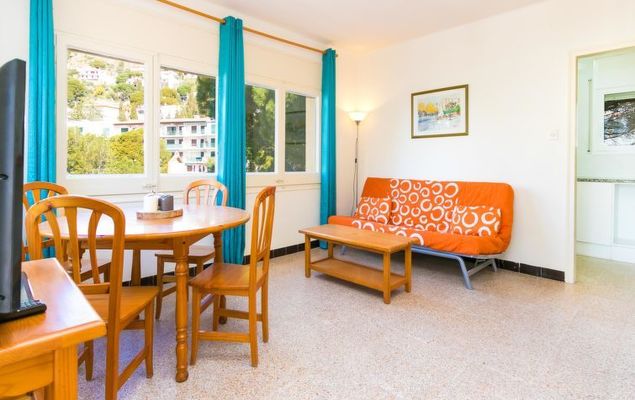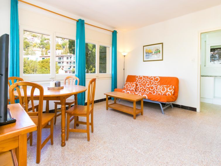Canyelles Petites: Gezellig, eenvoudig, comfortabel vakantiecomplex "Velazquez". Canyelles Petites, in de plaats, 4 km van het centrum van Roses, rustige, zonnige ligging tegen een helling, 60 m van zee, 60 m van het strand, de straat oversteken. Voor medegebruik: openluchtzwembad hoekig (10 x 4 m, 80 - 180 cm diepte, seizoensgebonden beschikbaarheid: 12.Mei.-30.Sep.) met trap. In het huis: Internet (WiFi). Winkel, levensmiddelenwinkel, supermarkt 150 m, restaurant 100 m, bar, café 20 m, voetgangersgebied 30 m, bushalte 100 m, zandstrand "Canyelles Petites", baai 60 m. Jachthaven 3 km, golfterrein 20 km, tennis 5 km, manege 10 km. Attracties in de buurt: Parque Acuático Aquabrava Roses 6 km, Skydive y túnel del viento Empuriabrava 11 km, Cadaqués 18 km, Castillo y casino de Perelada 25 km, Monasterio de Sant Pere de Rodes 24 km, Museo Dalí Figueres 24 km. Let op: Bij deze accommodatie zijn meer vergelijkbare woningen te huur. De appartementen zijn terrasgewijs gebouwd tegen de helling van een heuvel. De terrassen van de appartementen staan onderling met elkaar in verbinding. Toegangsweg naar de verschillende appartementen en het zwembad via trappen naar beneden. De appartementen zijn gelegen op 200 m van het strand van Canyelles Petites, een van de mooiste stranden van Roses. LET OP: de residentie wordt voornamelijk bewoond door families. Het huisreglement schrijft stilte voor vanaf 23.00 uur.Available private garage in all apartments except the es9410.383.3 Pease note : apartments without heating.
