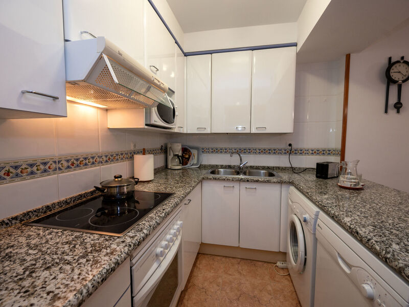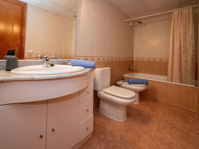 "Colom", appartement 3-kamers 51 m2. Het objekt is geschikt voor 2 volwassenen + 2 kinderen. Doelmatig en comfortabel ingericht: woon-/eetkamer met eettafel, Digitale TV, elektrische verwarming en air-conditioning. Uitgang naar het balkon. 1 kamer met 1 2-pers bed (135 cm, lengte 190 cm), elektrische verwarming en air-conditioning. 1 kamer met 1 x 2 stapelbedden (80 cm, lengte 190 cm), elektrische verwarming en air-conditioning. Open keuken (oven, afwasmachine, 4 keramische glas kookplaten, broodrooster, waterkoker, magnetron, elektrische koffiemachine). Bad/bidet/WC. Balkon. Balkonmeubilair. Uitzicht op het zwembad en de tuin. Ter beschikking: wasmachine, strijkijzer, haardroger. Internet (WiFi, gratis). Garage (1 Auto). HUTB-073953 // Reg. Nr.: ESFCTU00000809800062536300000000000000000HUTB-0739537