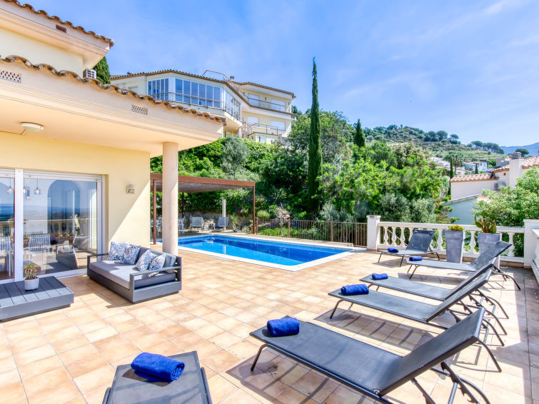 Groot, moderne, gezellige eengezinswoning "Belle vue". In de plaats Palau Savardera, 8 km van het centrum van Roses, rustige, zonnige ligging villa wijk, gebied met weinig verkeer, 7 km van zee, 7 km van het strand, op het zuiden. Voor alleengebruik: groot tuin op verschillende niveaus (omheind) met planten en bomen, openluchtzwembad hoekig (8 x 4 m, 100 - 200 cm diepte, seizoensgebonden beschikbaarheid: 01.Mei. - 30.Okt.) met trap. Terras, tuinmeubelen, barbecue, parkeerplaats (voor 3 auto's) op het terrein. Oplaadstation. Levensmiddelenwinkel 3 km, supermarkt 3 km, restaurant, bar, café 500 m, bushalte "Moventis estació bus Roses" 8.8 km, treinstation "Estación Tren Vilajuiga" 6 km, zandstrand "Roses" 9 km. Jachthaven 9 km, golfterrein (18 holes) 12 km, zeilschool 9 km, tennis 3 km, manege 5 km. Attracties in de buurt: Zona de padel con bar y restaurante 500 m, Parque Acuático Roses Aquabrava 3 km, Túnel del viento y Skydive Empuriabrava 12 km, Cadaqués 17 km, Museo Dalí Figueres 22 km, Castillo y festival de Perelada 15 km. Auto noodzakelijk. Groepen jongeren uitsluitend op aanvraag. De sleuteloverdracht vindt plaats bij het agentschap Interhome in Empuriabrava.
