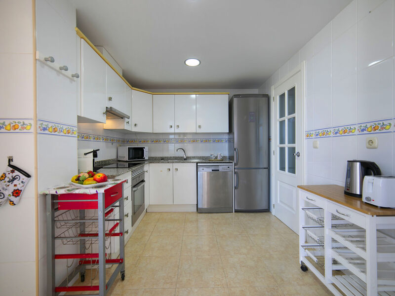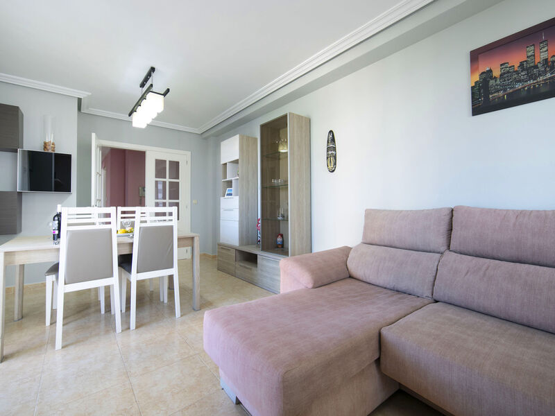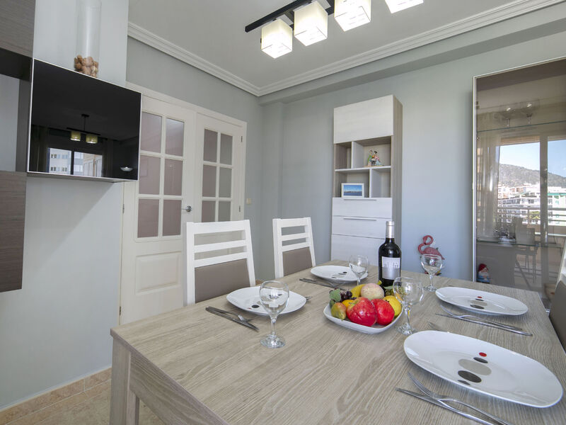 "Terrazas", appartement 3-kamers 71 m2 op de 5e verdieping. Het objekt is geschikt voor 5 volwassenen. Ruim, comfortabel en modern ingericht: woon-/eetkamer met Sat-TV, Digitale TV, air-conditioning en heteluchtverwarming. Uitgang naar het terras. 1 kamer met 1 2-pers bed (180 cm, lengte 200 cm), douche/bidet/WC, air-conditioning en heteluchtverwarming. 1 kamer met 2 bedden (90 cm, lengte 190 cm), 1 divanbed (90 cm, lengte 190 cm), air-conditioning en heteluchtverwarming. Keuken (oven, afwasmachine, 3 keramische glas kookplaten, broodrooster, waterkoker, magnetron, diepvriezer, grill, elektrische koffiemachine). Uitgang naar het terras. Douche/WC. Groot terras 32 m2, klein terras 9 m2. Terrasmeubelen. Uitzicht op zee en de stad. Ter beschikking: wasmachine, strijkijzer, haardroger. Internet (WiFi, gratis). Parkeerplaats nr. 27 (omheind, 1 Auto). 1 klein huisdier/hond toegestaan. VT-515608-A // Reg. Nr.: ESFCTU00000302900054336900000000000000000VT-515608-A2