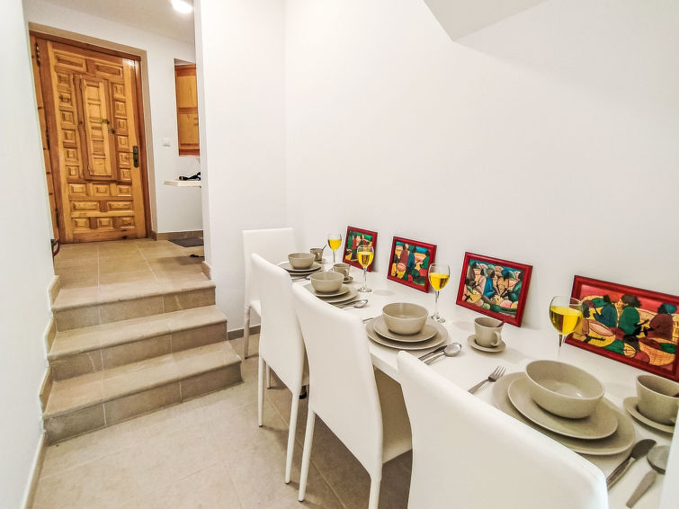 Eenvoudig rijtjeshuis "Colores al Mar", 46 m boven zeeniveau, van 3 verdiepingen. In de plaats, 500 m van het centrum van villajoyosa, centrale, drukke, zonnige ligging, 100 m van zee, 100 m van het strand, in een voetgangerszone. Supermarkt 500 m, restaurant, bar 100 m, bushalte "Villajoyosa-Alicante-Benidorm" 600 m, treinstation "Villajoyosa-Alicante-Benidor," 500 m. Golfterrein (18 holes) 11 km, wandelroutes 300 m vanaf het huis. Attracties in de buurt: Aqualandia Benidorm 21 km, Mundomar Benidorm 21 km, Terramitica Benidorm 15 km, Terra Natura Benidorm 15 km, Alicante 35 km, Aeropuerto Alicante 52 km. Geen lift. Baby uitrusting op aanvraag, niet geschikt voor kleine kinderen. Het objekt is geschikt voor 4 volwassenen. De eigenaar accepteert geen jeugdgroepen. De woning bevindt zich in een voor verkeer beperkte zone. De omgeving is gevoelig voor geluidsoverlast. Gelieve geen lawaai te maken en de rust te bewaren.