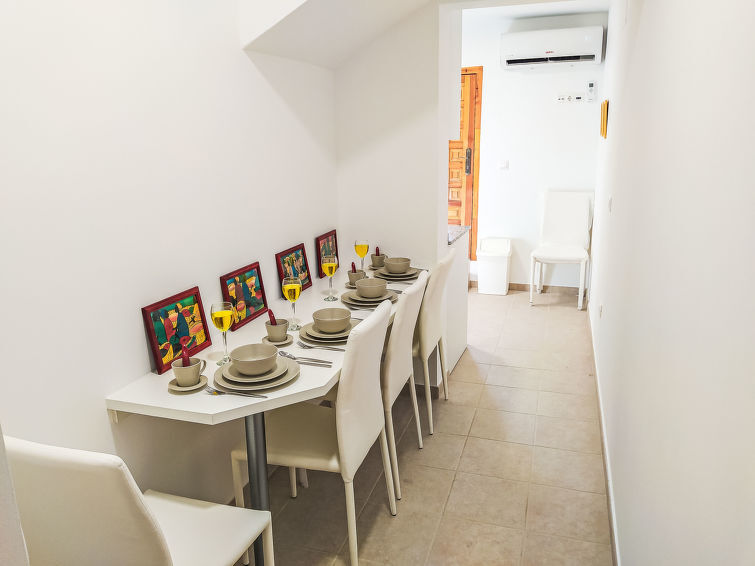 "Casa Colores al Mar", huis in een rij 3-kamers 46 m2 op 3 verdiepingen. Het objekt is geschikt voor 4 volwassenen. Licht, eenvoudig en doelmatig ingericht: kookhoek 11 m2 (oven, afwasmachine, 4 keramische glas kookplaten, broodrooster, waterkoker, magnetron, diepvriezer, elektrische koffiemachine) met bar, eettafel. Air-conditioning, heteluchtverwarming. Bovenverdieping: douche/WC. 2e Verdieping: 2 kamers 7 m2, elke kamer heeft 1 2-pers bed (140 cm, lengte 200 cm), ventilator. Salon met Digitale TV, air-conditioning en heteluchtverwarming. Uitgang naar het balkon. Douche/WC. Uitzicht op de plaats. Ter beschikking: wasmachine, strijkijzer, haardroger. Internet (WiFi, gratis). Niet geschikt voor kleine kinderen. TV alleen ES. VT-487059-A // Reg. Nr.: ESFCTU00000301600042168100000000000000000VT-487059-A8