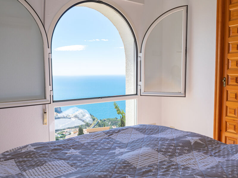 "Azul Celeste", appartement 4-kamers 104 m2 op 2 verdiepingen. Licht, comfortabel en mooi ingericht: woon-/eetkamer met Sat-TV (Flatscreen TV), air-conditioning. Uitgang naar het terras. 1 kamer met 1 2-pers bed (1 x 160 cm, lengte 200 cm), air-conditioning. Open keuken (oven, 4 keramische glas kookplaten, broodrooster, waterkoker, magnetron, diepvriezer, elektrische koffiemachine). Douche/WC. Geen verwarmingsmogelijkheid. Souterrain: 1 kamer met 1 2-pers divanbed (1 x 140 cm, lengte 200 cm) (lengte 200 cm), air-conditioning. 1 kamer met 1 2-pers bed (1 x 160 cm, lengte 200 cm), air-conditioning. Bad/WC. Groot terras 20 m2. Terrasmeubelen. Mooi panoramazicht op zee. Ter beschikking: wasmachine, strijkijzer, haardroger. Internet (WiFi, gratis). Niet rokers woning. Maximaal 1 huisdier/hond toegestaan. Toegang tot het zwembad met 73 treden. VT-494596A // Reg. Nr.: ESFCTU000003038000055871000000000000000000VT-494596A7