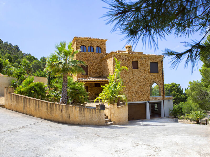 Finistrat: Groot villa "Mucho", van 4 verdiepingen, gerenoveerd in 2022, omgeven door velden. Buiten de plaats, 1 km van het centrum van Finestrat, in het district Partida de Ramal de Loix, rustige, zonnige ligging, 8 km van zee. Voor alleengebruik: terrein 5.000 m2 (omheind), groot tuin op verschillende niveaus, openluchtzwembad (12 x 4 m, 40 - 190 cm diepte, seizoensgebonden beschikbaarheid: 01.Jan. - 31.Dec.). Buitendouche. 1 km lange steile toegangsweg tot aan het huis. Parkeerplaats (voor 4 auto's). Winkel 1 km, supermarkt 1 km, bushalte "Finestrat" 1.7 km, zandstrand "Benidorm" 8 km. Golfterrein (18 holes) 8 km, wandelroutes 50 m vanaf het huis. Attracties in de buurt: Benidorm Palace, Aquanatura. Auto noodzakelijk. De eigenaar accepteert geen jeugdgroepen.